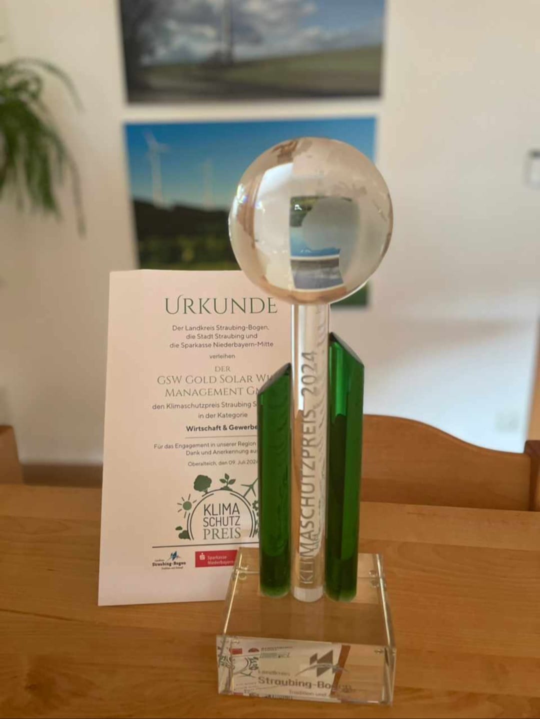 Wir wurden mit dem Klimaschutzpreis 2024 vom Bündnis Landkreis Straubing-Bogen, Stadt Straubing und Sparkasse Niederbayern-Mitte in der Kategorie Wirtschaft & Gewerbe für unseren Energielehrpfad in Hofdorf bei Hunderdorf ausgezeichnet.